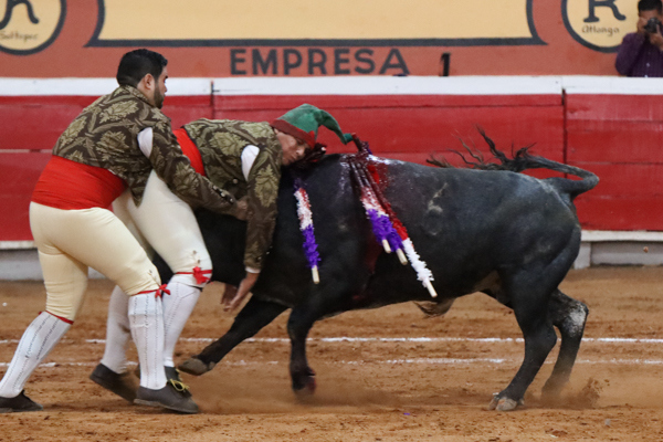 Angelino de Arriaga: Dos orejas al de Tenexac al realizar una faena variada que entusiasmo a los asistentes y abrochó con una buena estocada. / Una oreja al de Llaguno, toro que dejo expresar buenos momentos de clase por ambos pitones, pinchazo y estocada.