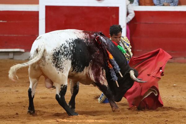 Angelino de Arriaga: Dos orejas al de Tenexac al realizar una faena variada que entusiasmo a los asistentes y abrochó con una buena estocada. / Una oreja al de Llaguno, toro que dejo expresar buenos momentos de clase por ambos pitones, pinchazo y estocada.